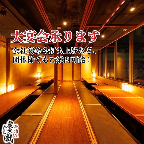 【大人数宴会】大人数での貸切宴会にも個室をご利用頂けます。お気軽にお問い合わせください。