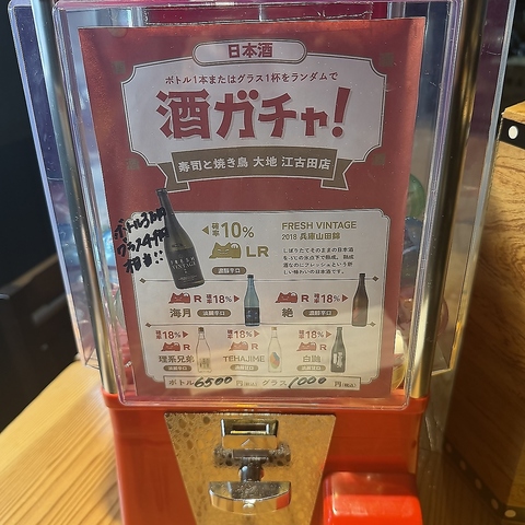 希少な銘柄ばかりの「酒ガチャ!」開催中♪ガチャで当たった地酒が店内でご堪能いただけます♪持ち帰りも◎
