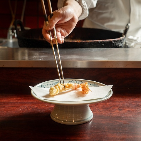 食材の個性はもちろん、気温や湿度を見極め、一品一品丁寧に揚げていきます。こだわりの天ぷらを是非。