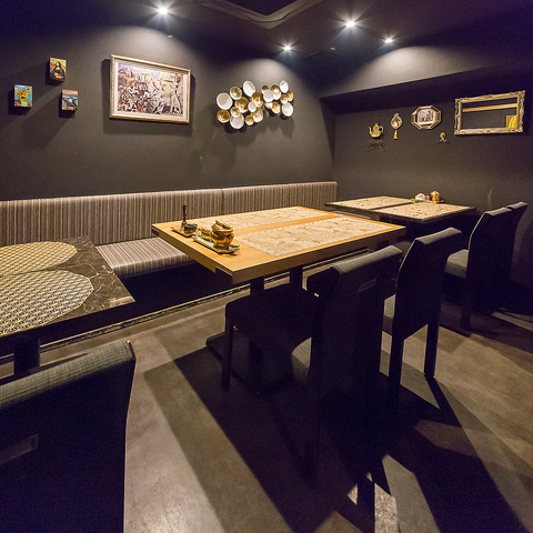 黒の中に優しい風合いのテーブルが映えるシックな店内。女性オーナーの細やかなもてなしの心を随所に感じられる空間です。6人以上でのご利用で半個室として利用して頂けます。