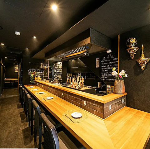ゆったりと食事ができるシックな空間をご用意◎食事をゆったりと楽しんで頂けるよう、カウンター席の幅は広めに設けました。接待やデートなど、大切な方と過ごすひと時にどうぞ。