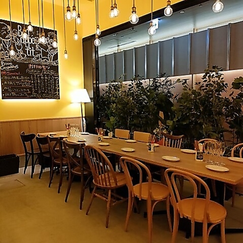 ★★団体14名様までご案内可能です★★カジュアル、だけどちょっとお洒落な空間で宴会利用をお考えの方におすすめ♪イエローのクロスとおしゃれな間接照明、木を基調としたテーブル・イスが醸し出す空間で思う存分お楽しみください。14名様以上でも相談いただければご要望に応えられる場合もございますのでご相談下さい。