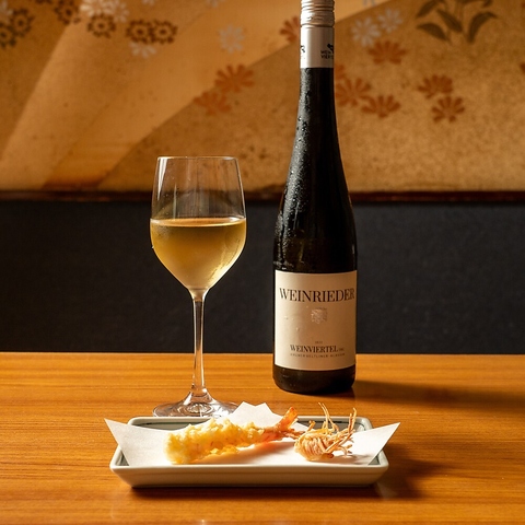 伝統の揚げたて天ぷらとの相性が考えられた厳選したワインや日本酒。