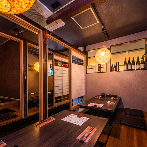 当店の和風居酒屋は、完全個室を完備しており、最大6名様までご利用いただけます。落ち着いた雰囲気の中で、周囲を気にせずにお楽しみいただけるのが魅力です。さまざまなシーンに対応した個室は、プライベート感を大切にした設計◎和のテイストを取り入れた内装は、心地よい空間を演出◎リラックスした時間を提供します。