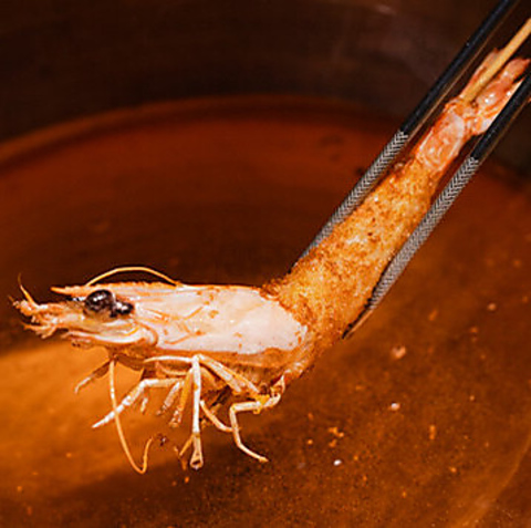 創業40年、神戸駅前の老舗れんが家で受け継いだ伝統の「絶妙の揚げ加減」と「サクサク食感」をお楽しみいただけます。使用する食材は新鮮な食材や旬の食材を豊富に使用しております。海老はご注文いただいてから生きた状態の海老を調理し、下処理を施してから揚げてご提供するなど、こだわりの串かつをご堪能ください