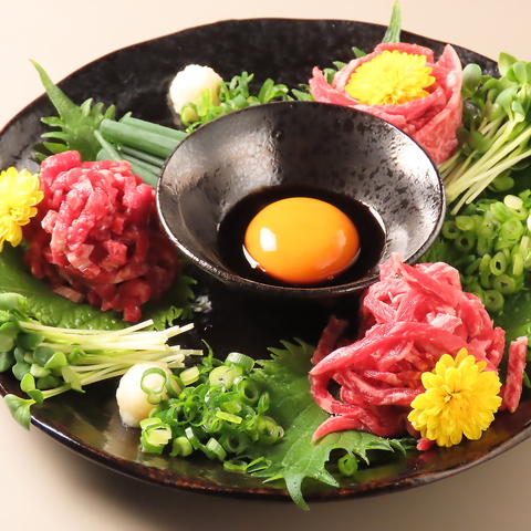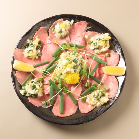 低温調理を施したタンを本来の触感を損なわれないギリギリの薄さまでスライスし、肉本来のうまみとコリコリ感を両立させた牛タンユッケ。ネギ塩だれとそのままのお味の2種類でお楽しみください。名物メニューを豊富に取り入れた宴会コースもおすすめ☆