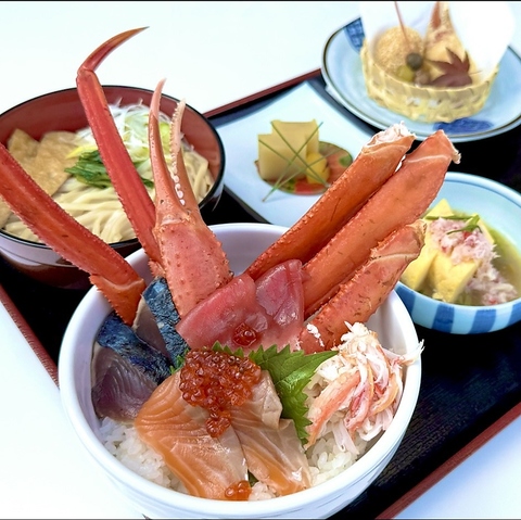 「海鮮丼」「かに爪の天ぷら」「おうどん」など、繊細な蟹の風味を引き立てる多彩な料理が揃い、五感で味わう贅沢なひとときをお過ごしいただけます。