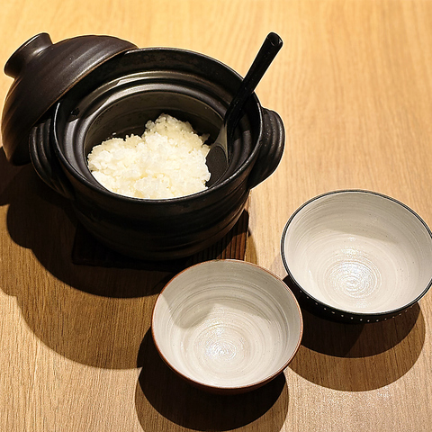 お米は各地から取り寄せた品種を使用し、一合ごとに炊きあげてご提供いたします。白飯はもちろんのこと、季節によって素材が変わる「本日の炊き込みご飯」もご用意。是非お召し上がりください。※ご提供に35分ほどお時間をいただきます