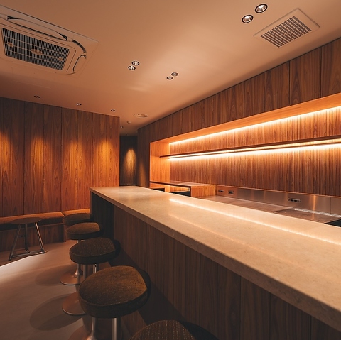 ウッディで温かみのあるインテリアに、控えめな照明。BGMも心地よく、カウンターやソファ席、半個室まで揃っています。程よい距離感の接客も心地よく、肩肘張らずに過ごせます。