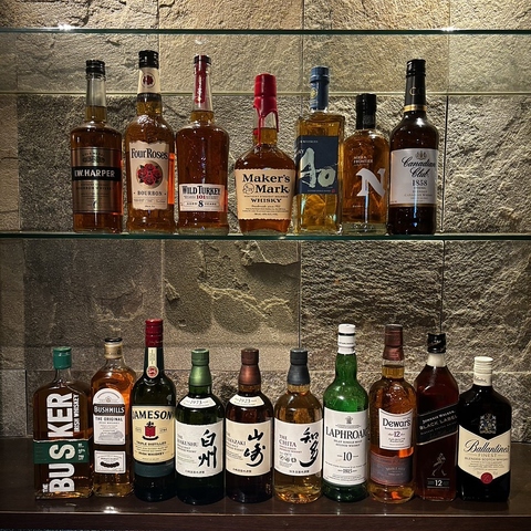 “世界5大ウイスキー”に加え、“ワールドウイスキー”も豊富にラインナップ。気分に合わせて飲み比べも♪