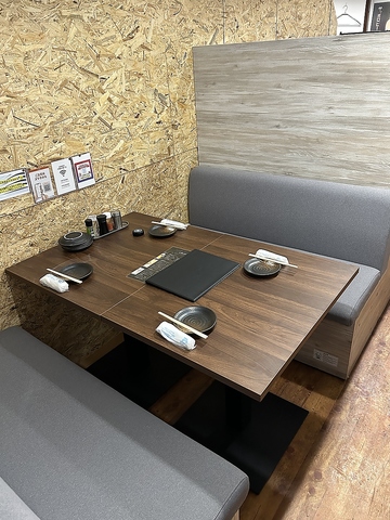 ソファー席2~4名様♪プライベート空間ですのでデートにも◎前後に2席ありますのでつい立を外せば8名様までok少し狭くなりますが、10名様の利用実績も有り