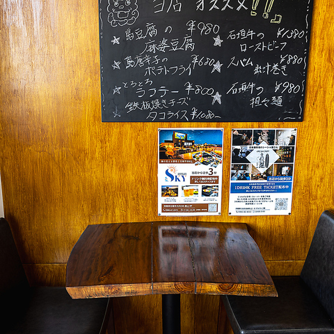 温かみのあるインテリアが魅力◎木材を中心とした店内では沖縄の自然の美しさを感じさせます。店内は落ち着いた照明で、心地よい空間が広がっており、忙しい日常を忘れてリラックスできるひとときを提供します。