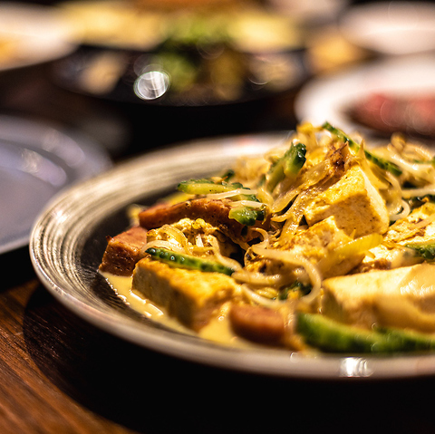 ゴーヤーと島豆腐を出汁で炒めた定番。食事の中心に。