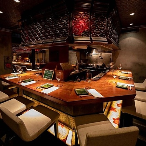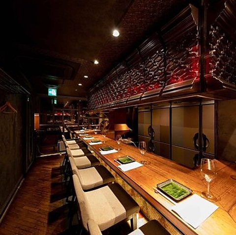 【カウンター席】明暗バランスを最適化したライトアップにより、臨場感溢れる21席のカウンター席をご用意いたしました。2名様はもちろん、3名様以上の複数名でも楽しむことができるお席となっておりますので、お気軽にご来店ください♪