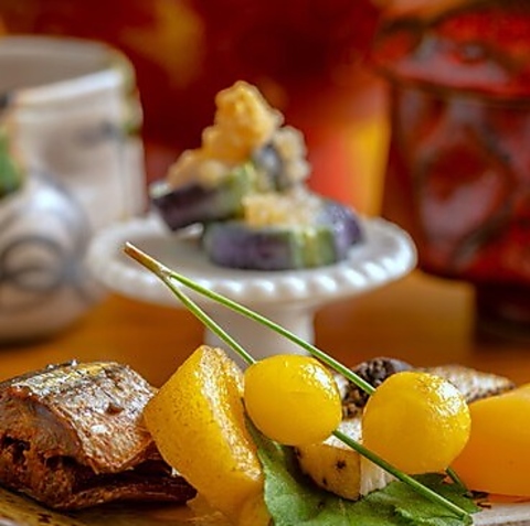 色とりどりの旬の食材をを使った割烹料理とイタリアから直輸入したワインのマリアージュをお楽しみください