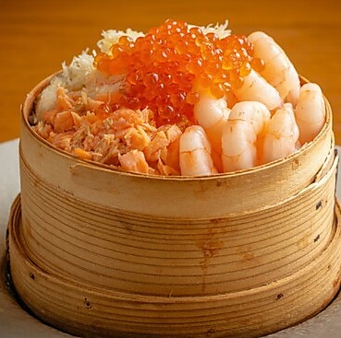 Steamed organic rice with seafoods