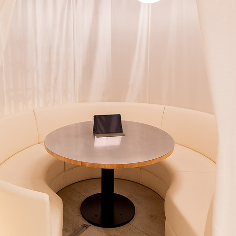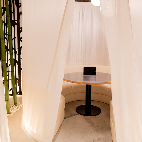 【人気の半個室席/指定ご予約可能!】白を基調とした和を感じる店内には、プライベート感のある半個室もご用意しました。観光でのお食事や女子会などさまざまなシーンにぜひ!白いカーテンで丸く仕切られた半個室のソファー席もあり、周りを気にせずゆっくりお食事を楽しめます!
