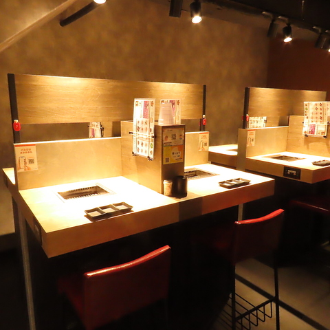 お席ごとに無煙ロースターを設置。煙が出ない設計の為匂いの心配もありません!ご家族・ご友人とのお食事はもちろん、おひとり様でも気軽にご利用いただけるようなお席となっております。ぜひ当店で焼肉をお楽しみください。