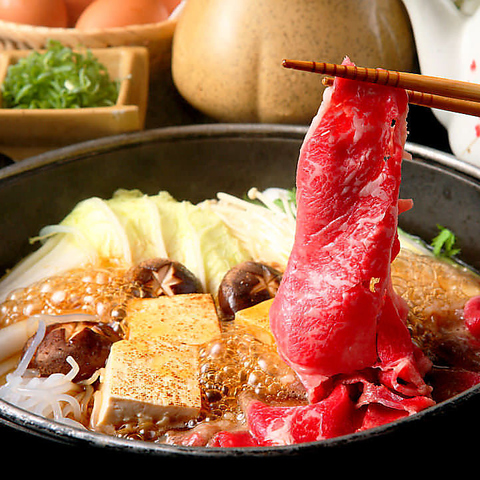 国産A5ランクの黒毛和牛を使ったすき焼きは是非一度お召し上がりいただきたい看板メニュー!他にも創作料理、黒毛和牛の炙り肉うにロール、炙り肉の寿司など、数々の絶品料理を提供!千葉県の漁港から直送で入荷する海鮮にもご注目です☆