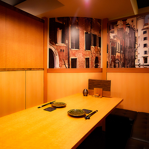 【完全個室】周囲を気にせず過ごせる完全個室を完備。2名様専用のプライベート空間から、グループ利用に最適なゆったり個室まで幅広くご用意。大切な記念日や接待、デートにもぴったりな落ち着いた雰囲気で、都会の喧騒を忘れさせる上質な時間をお過ごしいただけます。