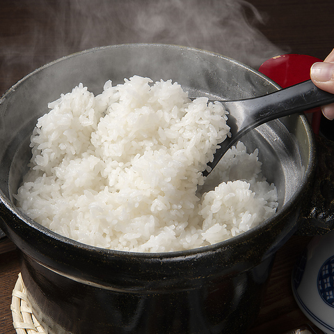 農家直買、長崎県産のお米を毎日精米しひと鍋ずつ土鍋で炊き上げてご提供。土鍋で炊き上げることでふっくらとした甘みのある、最高級のお米に。お肉との相性は言うまでもなく抜群です!美味しいお肉を前に心ゆくまでご堪能くださいませ♪