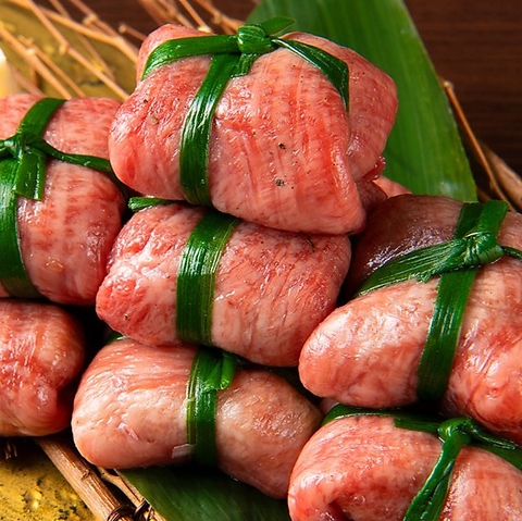 特製ネギ塩を牛タンで1つずつ仕込んでおります。かんだ時に口の中でネギ塩ダレと合わさったタンの旨味が名前のごとく爆れるようにあふれだす。ぜひご賞味ください。