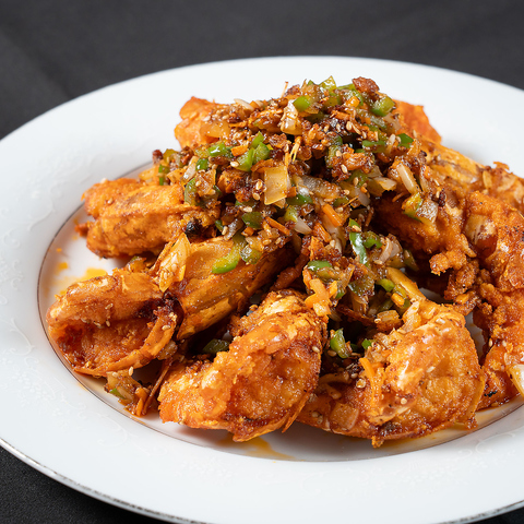 ぷりぷり食感の海老を特製のチリソースに絡めることで、ピリッとした辛さと甘みが絶妙に調和します。