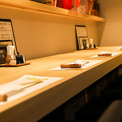 お一人様でのご来店も大歓迎!カウンター席は、ゆったりと5席をご用意しております。お仕事帰りの一杯や、自分の時間を大切にしたい夜に最適。お好きなお酒を片手に、料理人が織りなす技と美味しい料理を心ゆくまでお楽しみください。お気軽にお立ち寄りくださいませ。