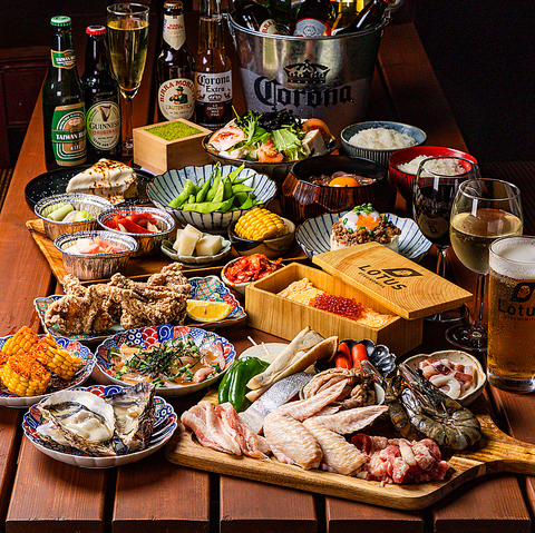 飲み放題付コースは4000円~ 出汁巻き玉手箱や贅沢銀鮭いくらのせなど名物メニューもつかっております