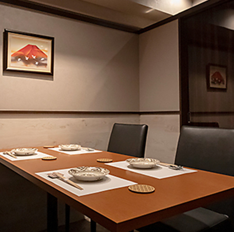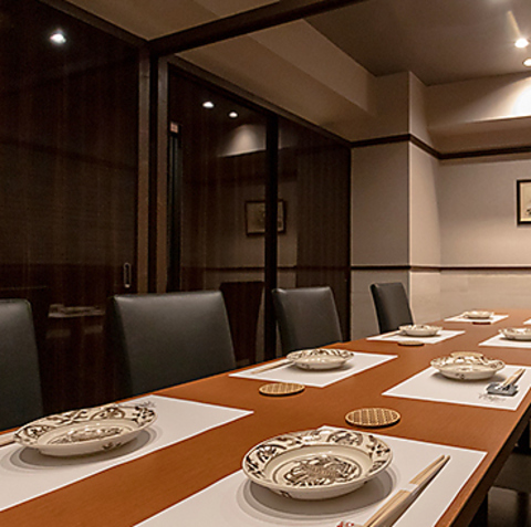 当店は全席完全個室となっており、接待や会食にも最適。和の粋と心地よさを感じていただける空間をご提供。