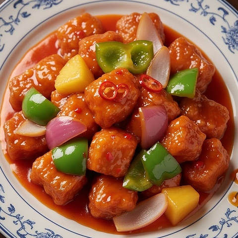 揚げた豚肉の衣はパリッパリ!中はジューシー!甘酢の酸味と油のコクがマッチ!!こだわりの豚肉や野菜を使った酢豚に似たお料理です。ぜひ召し上がってほしい一品です。