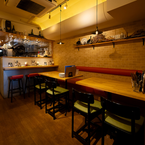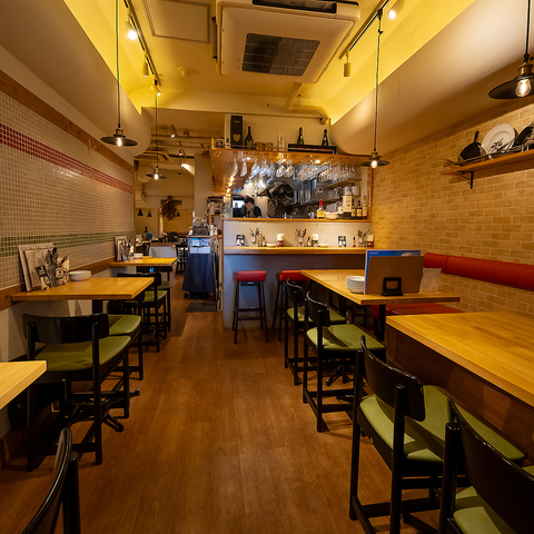 木目調・レンガ調の内装で暖色系にまとめた店内。温かみがあり、カジュアルながらゆったり寛げる空間です◎