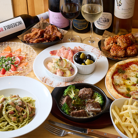 本格イタリアンの自家製、前菜の盛り合わせからオリジナルソースのパスタ、お肉料理まで楽しんでいただける飲み放題付きコースがおすすめ。仲間との食事や気分転換にぴったりな空間で、厳選ワインとともに贅沢なひとときをお楽しみください。