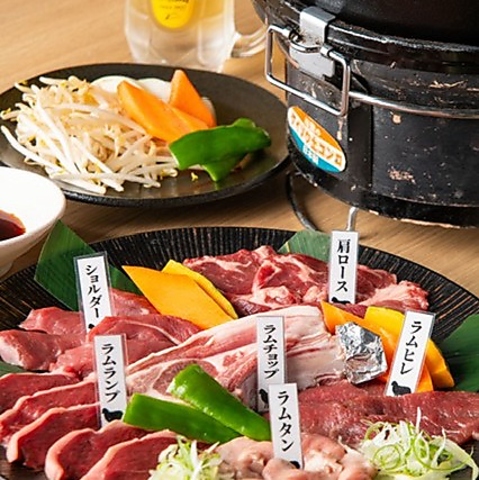 七輪を使用!ジンギスカン鍋で生ラムの堪能も良し!同時に焼肉ホルモンも七輪でOK!焼き肉は和牛からホルモンも充実、ジンギスカン食べて次は焼肉ホルモンと同時に味わっていただけます。