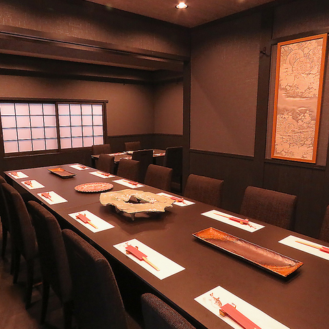 接待/顔合わせ/慶事の際にもご利用頂ける個室をご用意しております。格式高い雰囲気を醸し出した個室になっておりますので、大事なシーンにぜひご利用いただきたいお席となっております。当店の自慢の料理を落ち着いて召し上がりたい際にどうぞ。