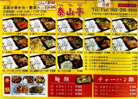 泰山亭 幕張店 テイクアウト 2025/10/17 更新