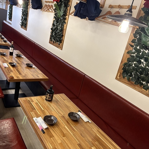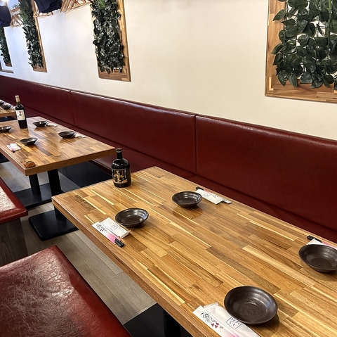店内は開放感あふれる広々とした造りで、お席の移動やお荷物の置き場所にも困らない快適な空間となっております。オープン席ながらもゆとりのあるレイアウトで、周囲を気にせずにお食事と会話をゆったりとお楽しみいただけます。カジュアルな飲み会や女子会、仕事帰りの一杯にもぴったりの贅沢な雰囲気です。