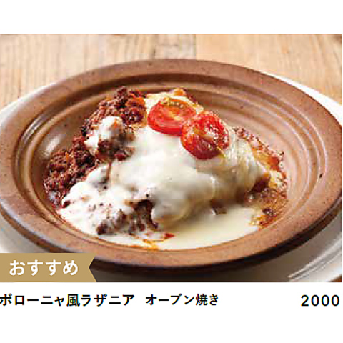 当店の定番メニューラザニアは女性人気No.1!熱々の陶板でご提供する、サルシッチャと赤ワインで煮込んだボロネーゼソースを使ったシェフ自慢の逸品をご堪能ください。