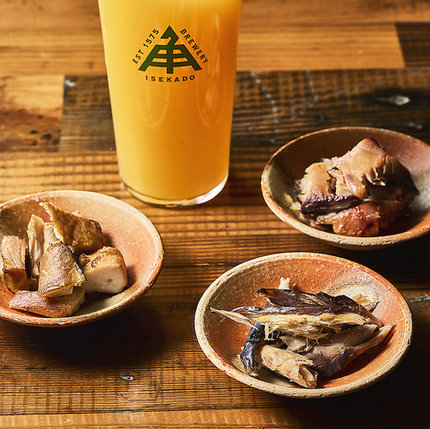 三重のローカル食文化から松阪牛や伊勢エビな的矢牡蠣など食の宝庫から届く食材を楽しんで頂けます。伊勢角屋のビールとのペアリングを楽しんで頂ける酒の肴も豊富に取り揃えております。