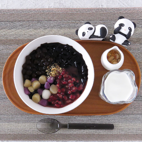 もちもちの芋圓と、つるるんとした仙草の、異なる食感が楽しい、ひんやり美味しい台湾風デザートです。【芋圓は紫芋やカボチャなどの野菜とタピオカ粉で作られています】Lサイズ:790円(税込)
