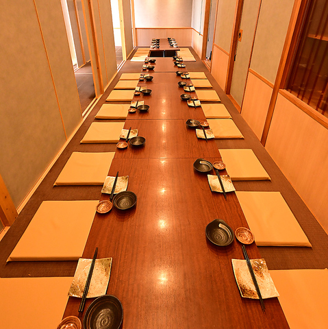 【完全個室】大人数での宴会も可能なお部屋です。席の配置のご相談も承りますのでお気軽にご相談ください。全席個室だから、周りを気にせず語らいの時間を楽しめます。少人数から大人数まで、あらゆるシーンにフィットする居酒屋空間です。