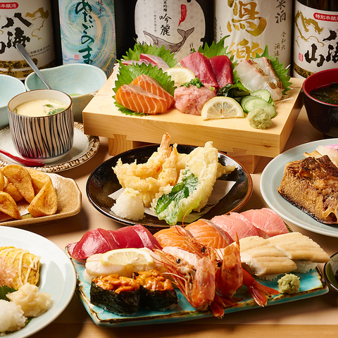 お寿司以外にも天ぷらやおでん、ふわトロの玉子焼きなどお酒との相性抜群なメニューを種類豊富にご用意。