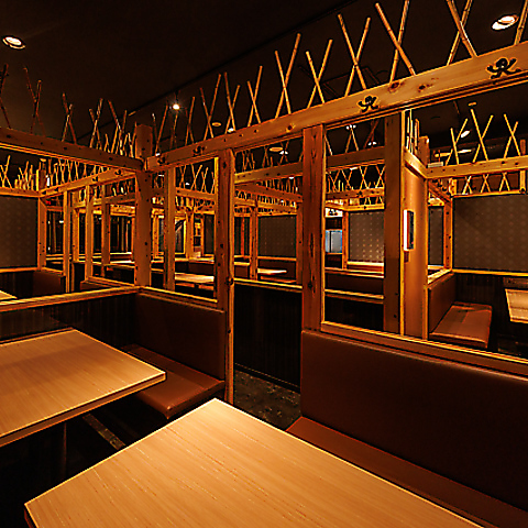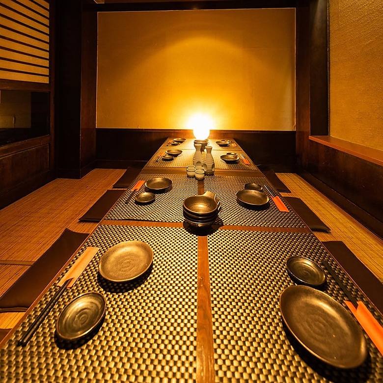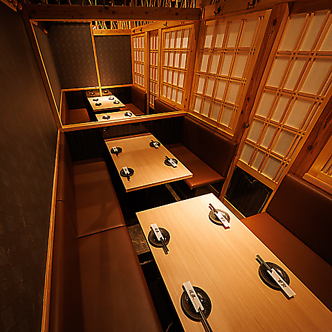 店内は完全個室席を多数ご用意しております♪広々とした完全個室は2名様~団体様まで大小様々なプライベート空間をご用意しており、飲み会や接待・歓送迎会や、記念日といった各種宴会にもご利用いただけます。ゆったりとした和モダンな空間でごゆっくりとお寛ぎくださいませ!!