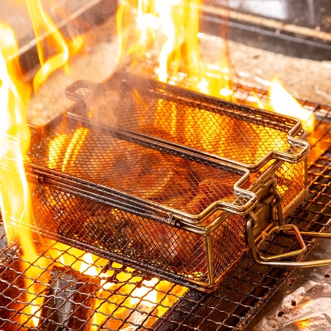 当店自慢の名物『炎のカゴ焼き』は三種類のお味でご用意!豪快に炎で仕上げた熱々のカゴ焼きは、香りも味も楽しめる名物料理♪ビールやお酒との相性も抜群で、シェアしてワイワイ楽しむのもおすすめです!