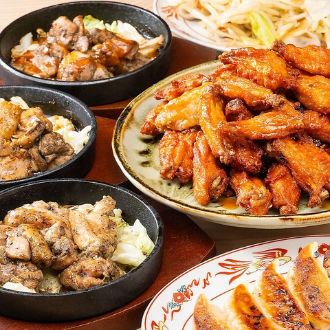 つる福自慢の三大名物『手包み餃子』『炎のカゴ焼き』『手羽先唐揚げ』をぜひお楽しみください♪
