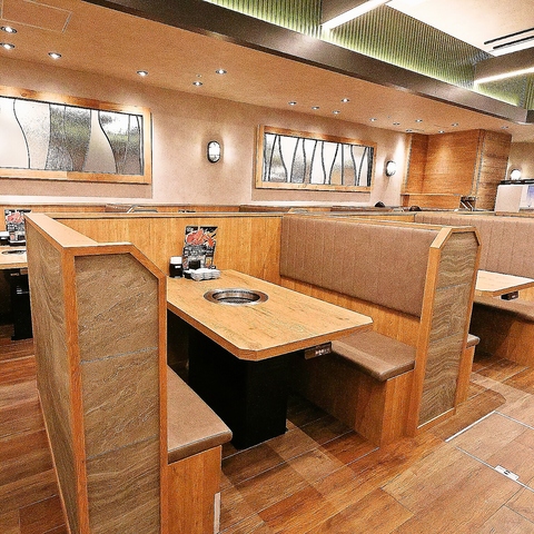 ボックス席はお子様連れのご家族でもごゆっくりお食事していただけます♪ご家族の皆様で、家族団らんで楽しいひと時をお過ごしください。バラエティー豊富にお肉やお料理をご用意しております。食べ放題でご満足いただけるまでお楽しみください♪また、焼肉で宴会も承っております。ご予約お待ちしております※画像は系列店