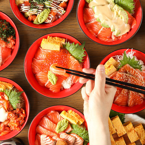その日に仕入れた新鮮ネタをたっぷり盛り込んだ、当店のイチオシ海鮮丼!「まぐろ」や「サーモン」、「ぶり」や「いくら」など、日毎に新鮮な魚介がたっぷり♪ランチタイム・ディナータイム共にご提供いたしております◎(内容は日替わりになりますので詳細は店舗スタッフまでお尋ねください。)