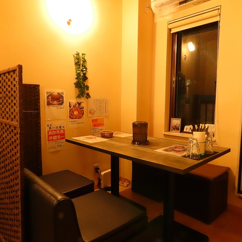 4名様掛けのテーブルもご用意。少人数でのご利用がしやすく、リラックスして食事が楽しめます。いつもの仲間とのお集まりや女子会などに最適です。美味しい料理に囲まれながら、心温まるひとときを過ごすことができるのが魅力的☆特別な時間を大切な仲間と共有してみてください!