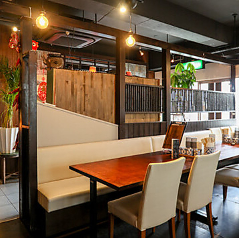 カジュアルな雰囲気のおしゃれな店内は、少人数の集まりから大規模宴会まで幅広いシーンでご利用いただけます!テーブル席は、大人数でも利用できて席の配置が可能なのでご相談ください。