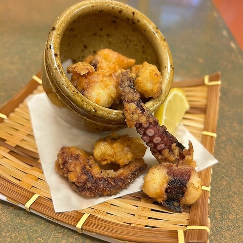 タコ壺から、タコがにょろり・・・!ちょっと待ったー!!カリッとジュワッと!噛むほど広がる旨み。